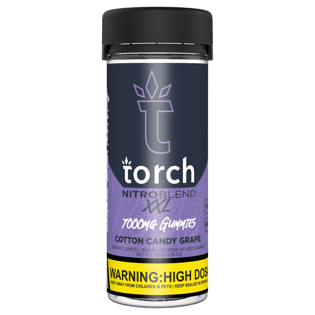 Introducing Torch Nitro Blend XXL Gummies—a bold new edible for hemp users who crave maximum potency and rich flavor. Each jar includes 20 vegan-friendly gummies, with 350mg of Torch’s proprietary Nitro Blend (a powerful fusion of THC-P and HHC-P) in every piece, totaling an intense 7000mg per jar. Made with live resin extract, these gummies offer a more robust cannabinoid profile, delivering powerful, full-spectrum effects that go far beyond the average edible.